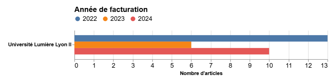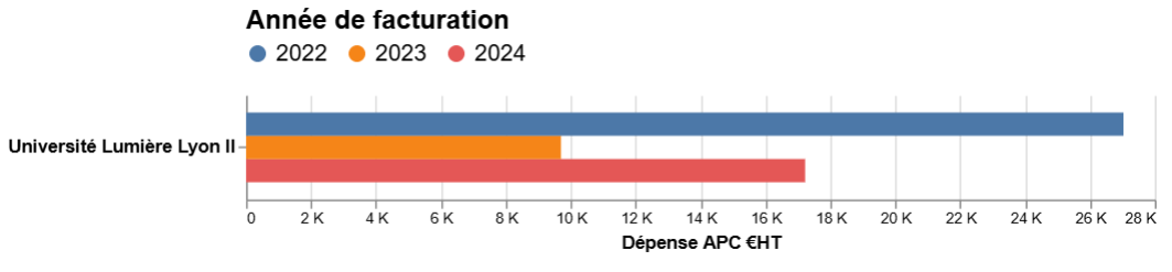 Dans le cadre de sa feuille de route science ouverte, l'Université Lumière Lyon 2 s'est engagée à suivre et analyser les dépenses liées aux APC en comparaison de celles des accords lecture et publication pour juger l'efficacité (pertinence/rentabilité) de ces derniers.